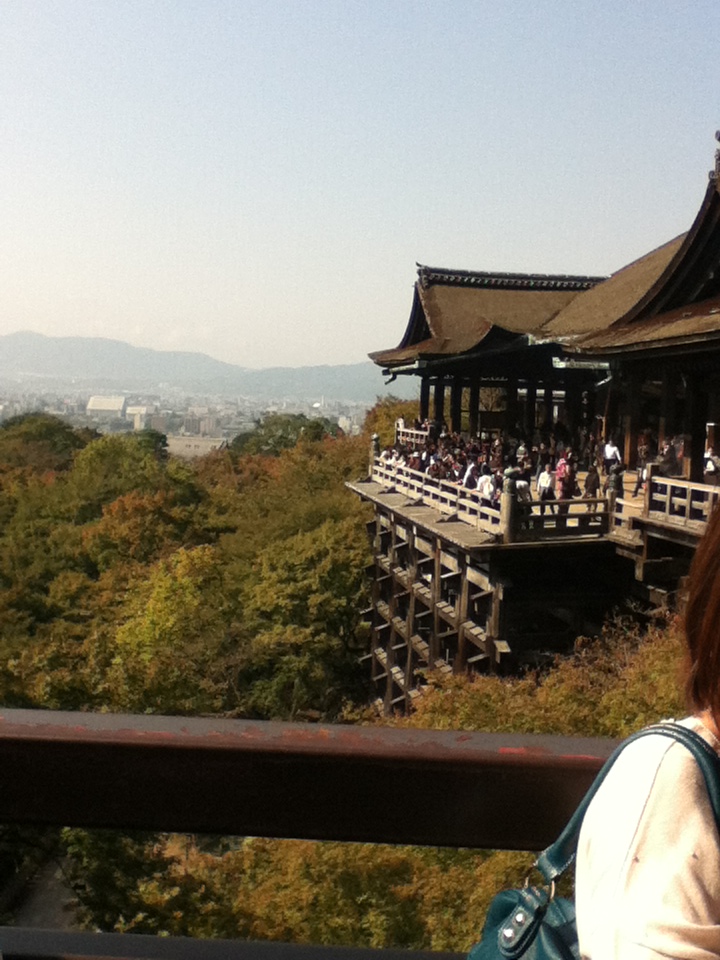 ものすごい混雑している清水寺ですが、平日にもかかわらず歩くのも結構大変なくらい混雑していました。清水の舞台まであがると、本当に景色がきれいで、すいこまれそうになります。こんな建物を大昔に作るなんてすごい!と改めて感心させられました。