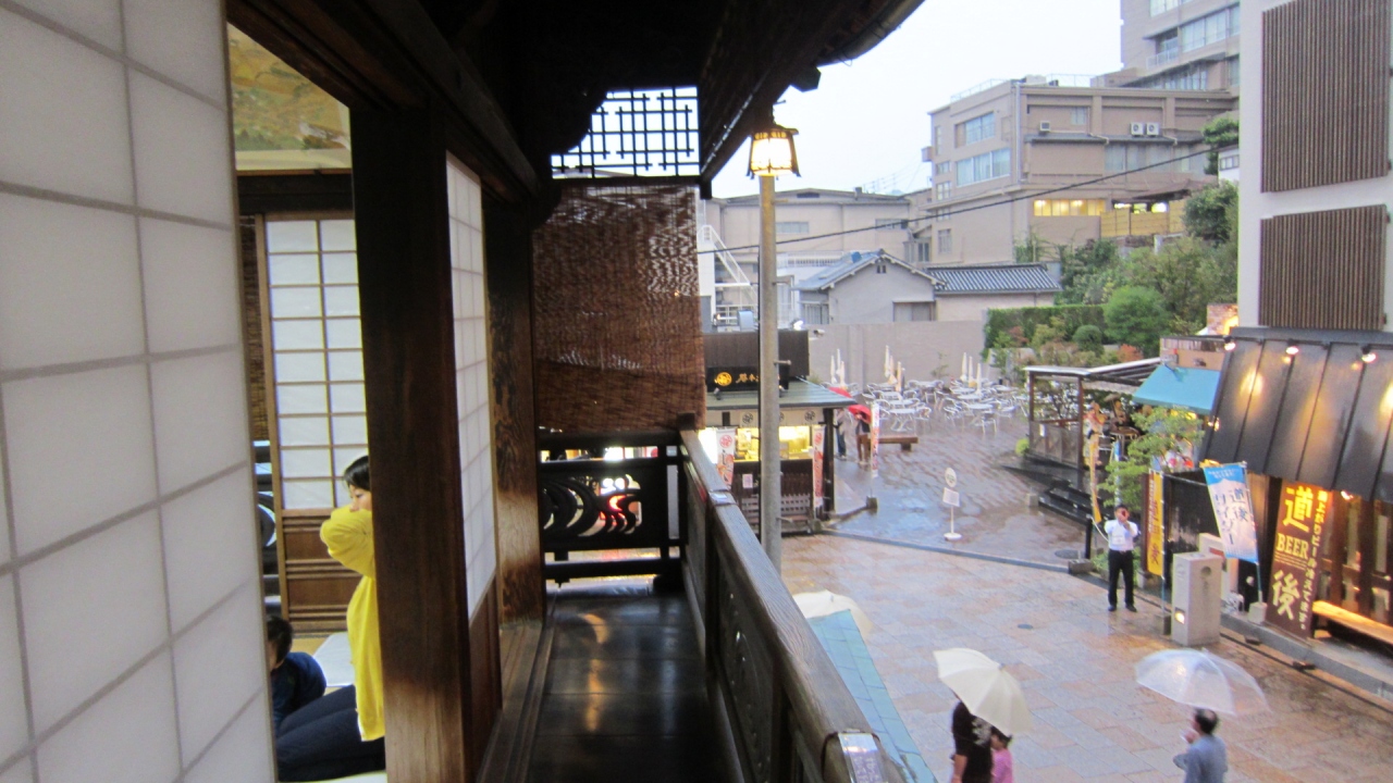 道後温泉本館の斜め前にある広場ですが、当日は暗くなっていたことと雨が降っていたため、広場でのんびりということはできませんでした。