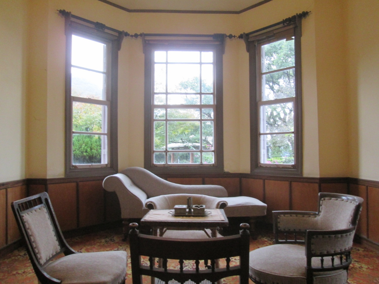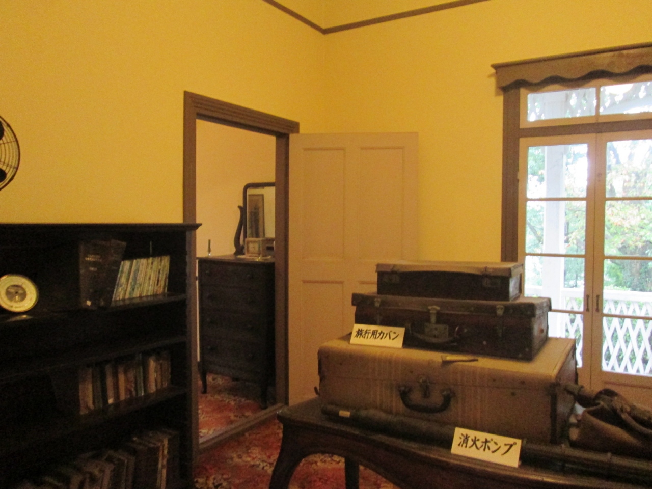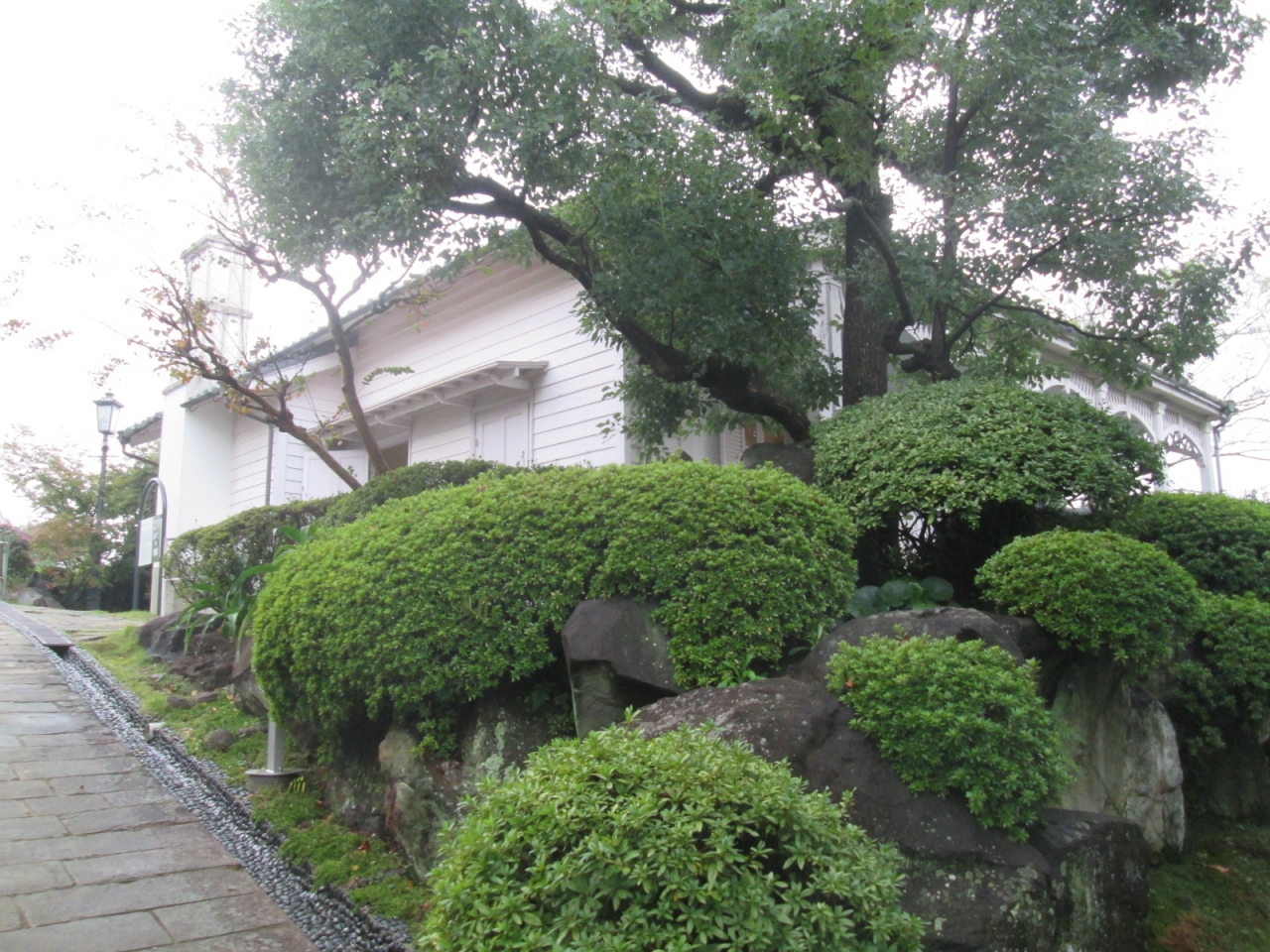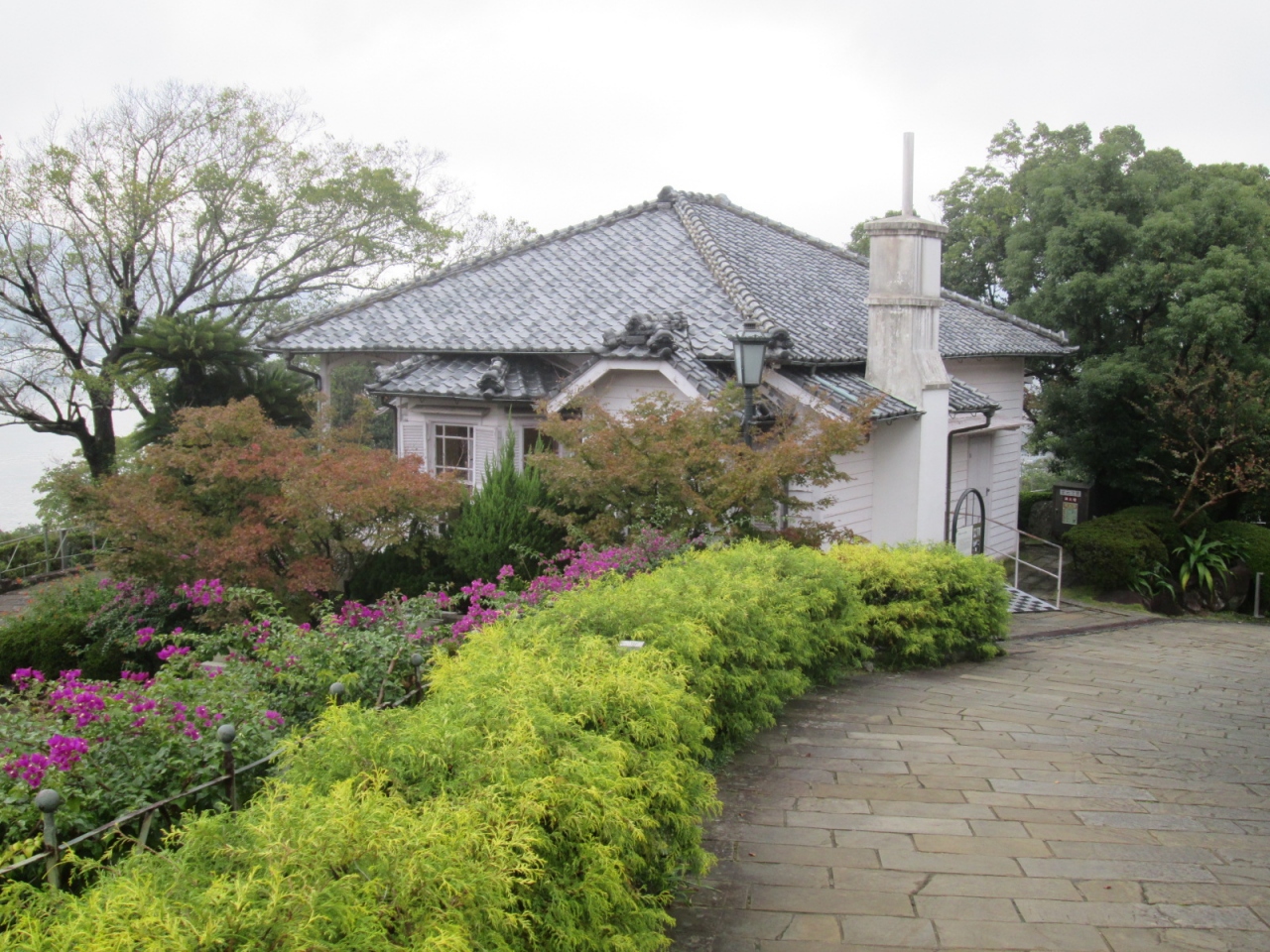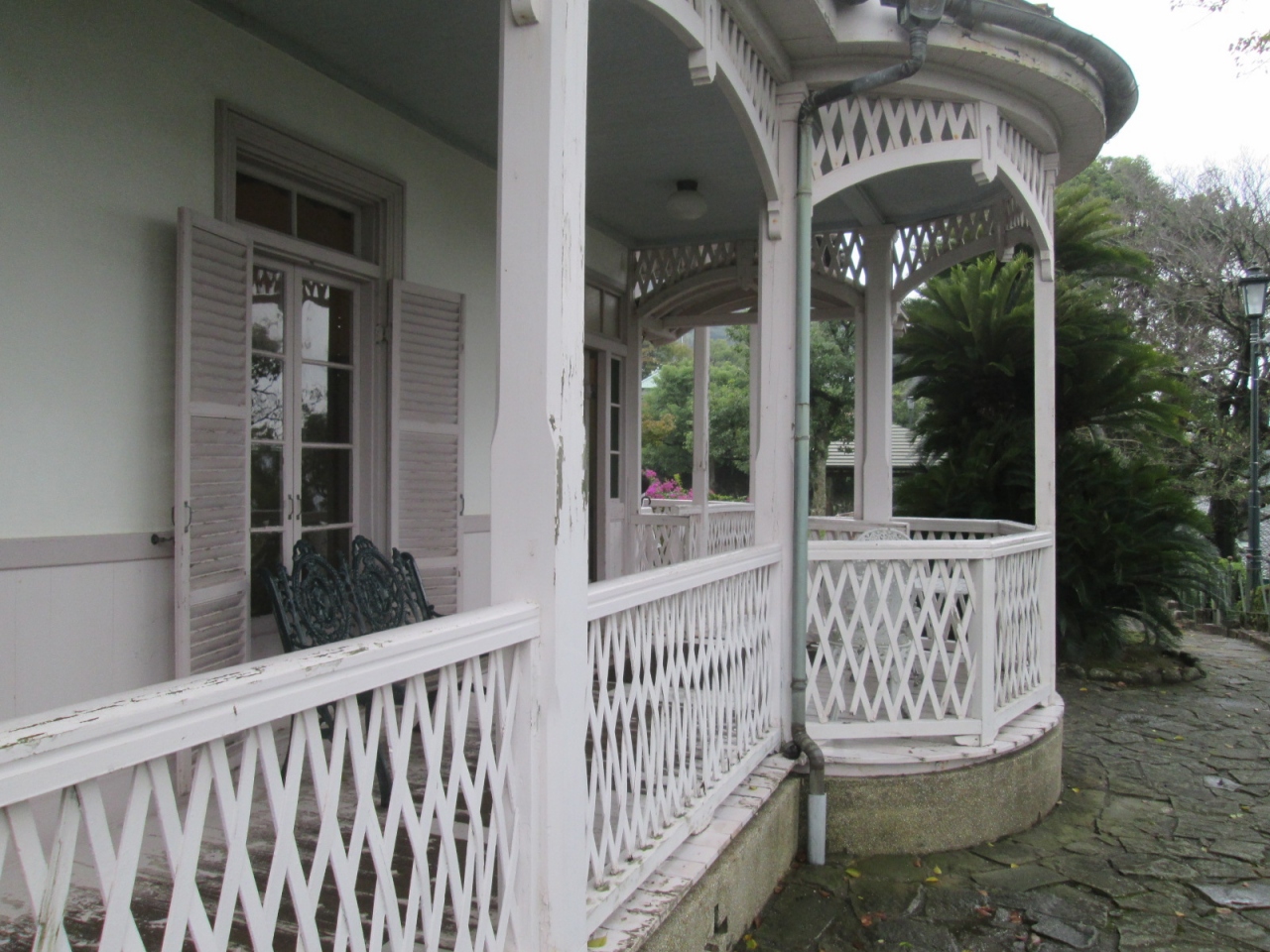 「グラバー園」の丘の中腹に建つのが「旧ウォーカー住宅」です。もとは大浦天主堂近くにあったウォーカーさんの住宅でしたが、その死後に夫人が母屋部分を長崎市に寄贈し、「グラバー園」に移設されたようです。確かに「旧ウォーカー住宅」には台所や浴室など生活臭のある部屋がないですね。テラスの椅子に掛けて美しい長崎港を眺められる良い場所だと思います。