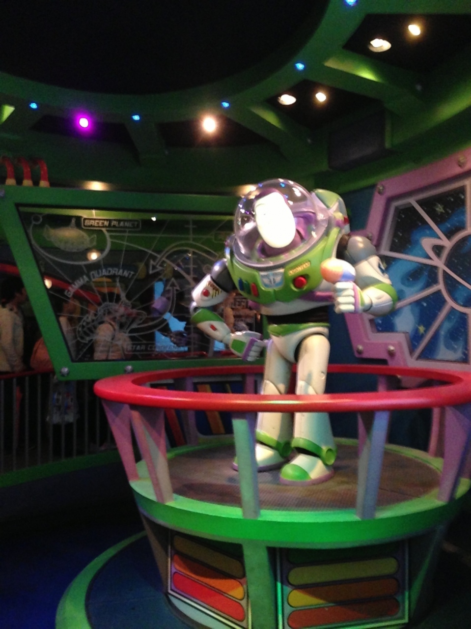 バズライトイヤーのアストロブラスターは、東京ディズニーランドにある、ライド系シューティングゲームです。乗り物に乗って的を撃ち点数を稼ぎます。うちのムスコが小中学生の時は最も大好きなアトラクションでした。いつも混んでいるような気がします。
