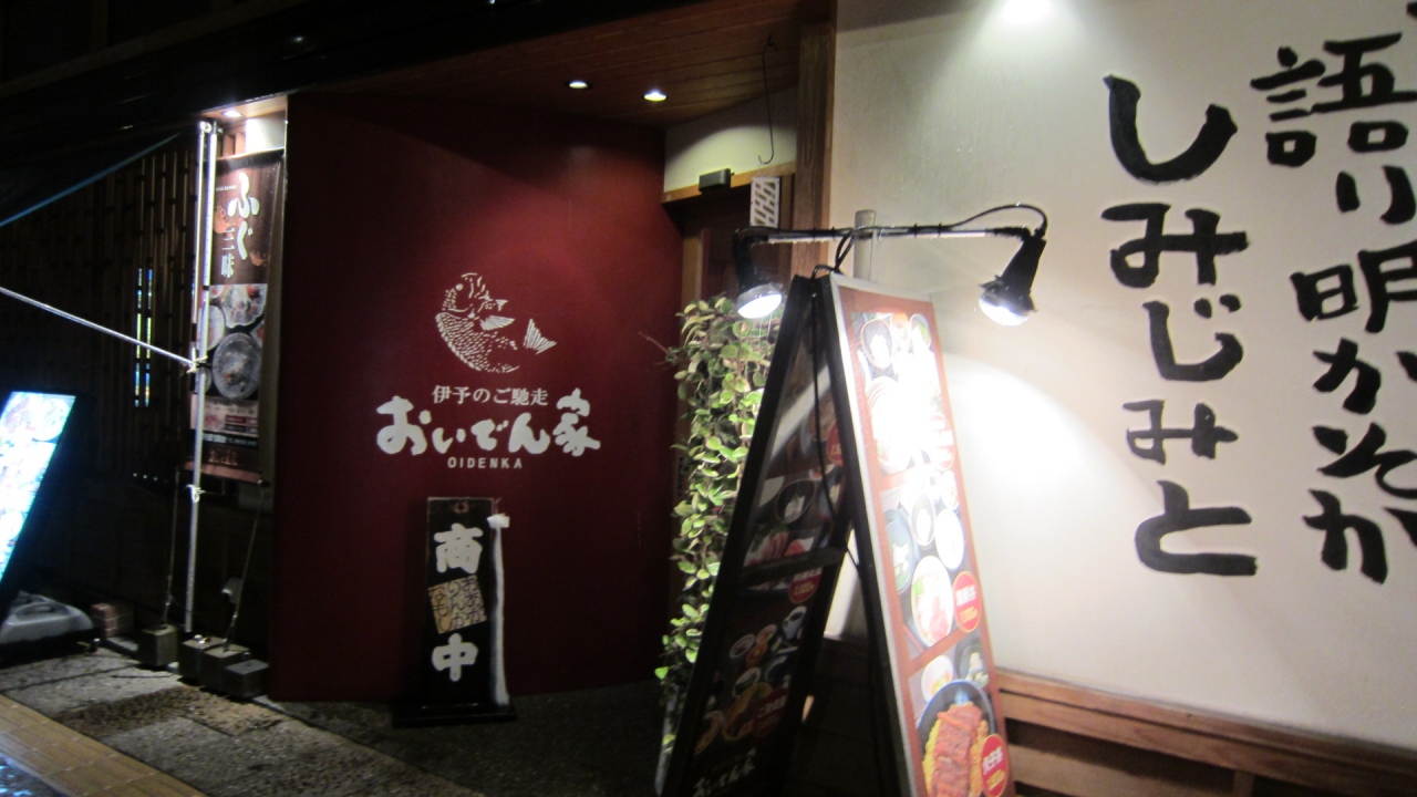 道後温泉本館に温泉に浸かり、神の湯二階でしばし休憩をとったあと、お腹も空いてきたので夕食を食べに行きました。