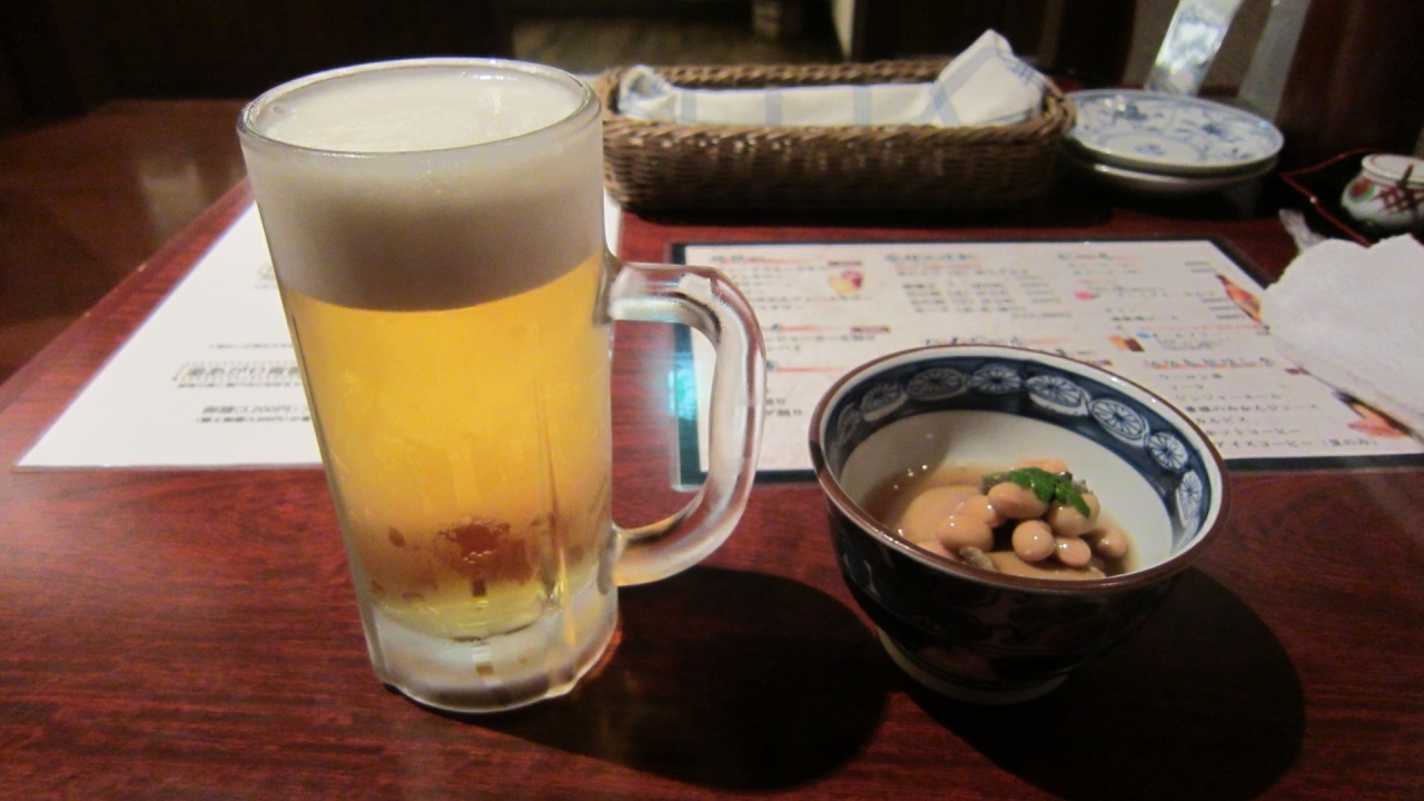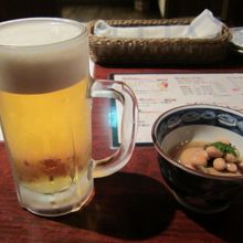湯上がりセットがあったので注文。生ビールにジャコ天とトコブシと思われる煮付けがついて1000円とお得でした。