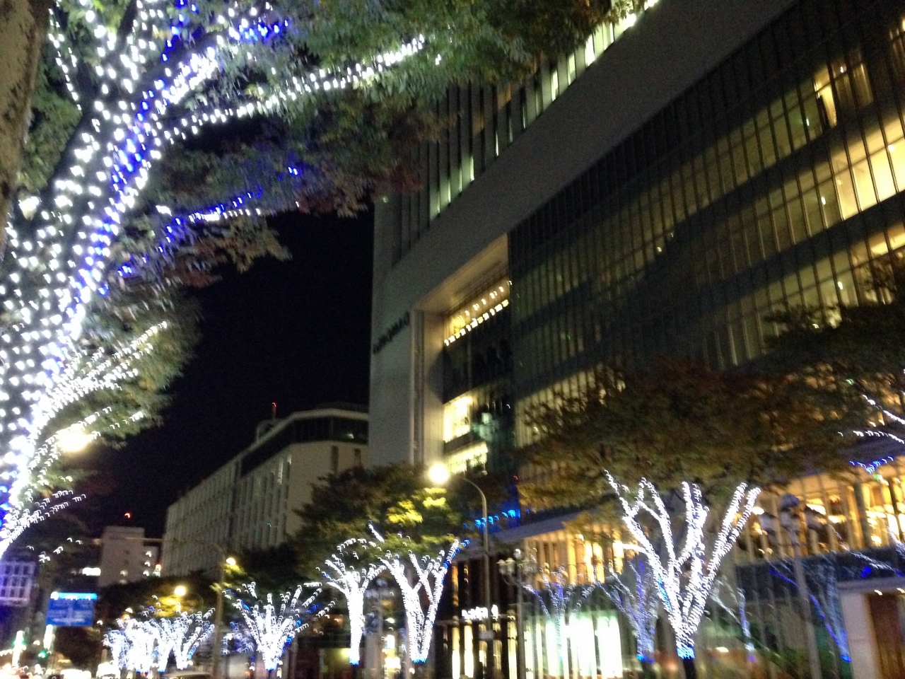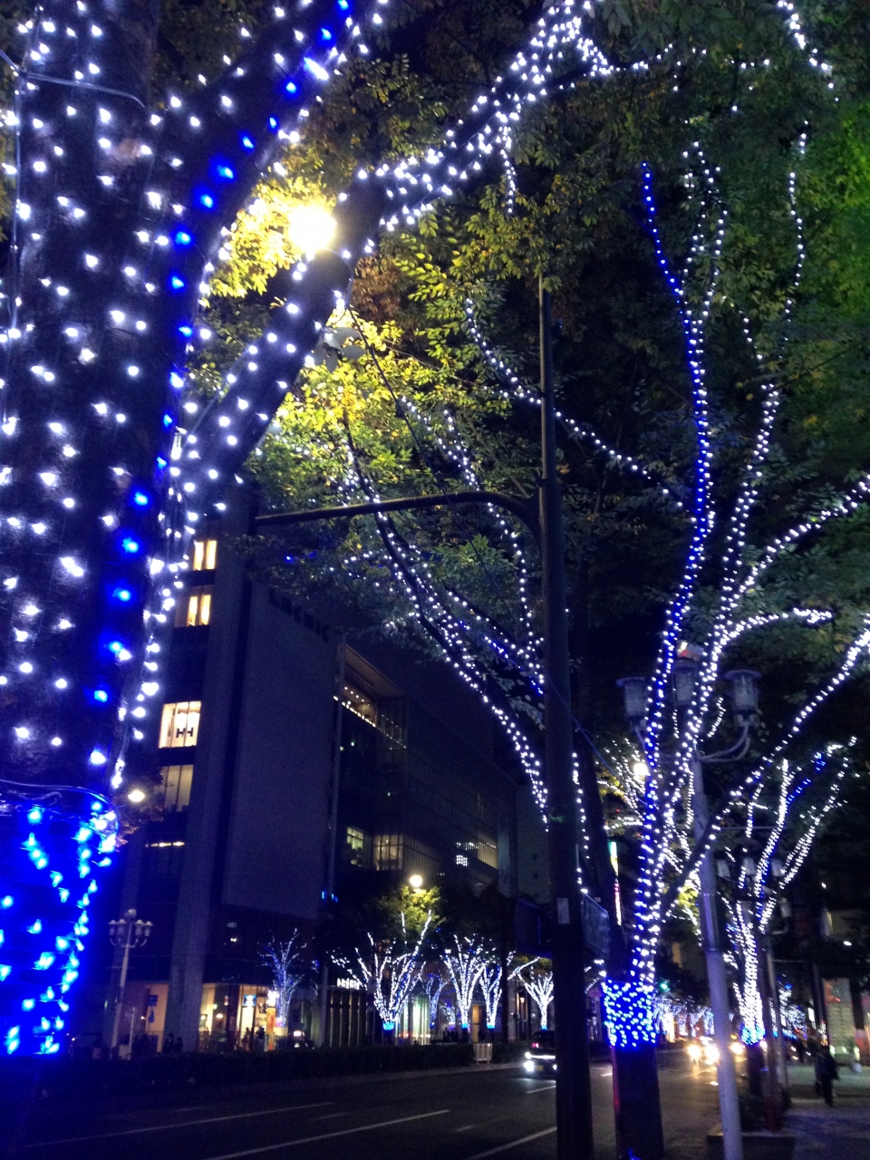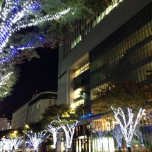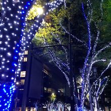 青色や白色で輝かせている綺麗なイルミネーションです。
