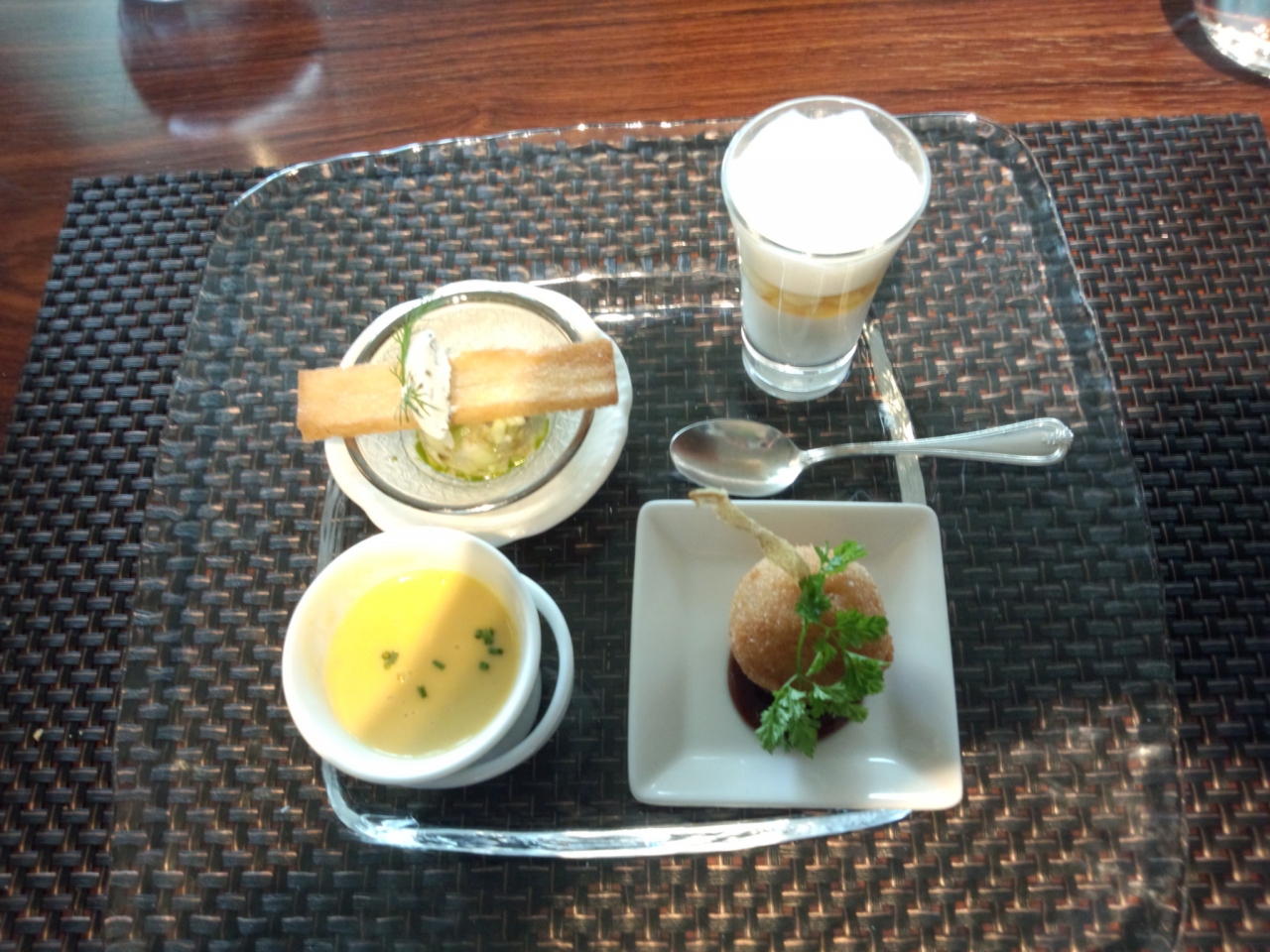 叔母のお見舞いに行く途中で、成城学園前駅をおり、駅ビル成城コルティのレストラン街があり、松尾を見つけた。予約をしていなかったが、とりあえず覗いてみたところ、運よく二人の席が空いていた。その空間には、先客の中年の女性7人がいた。よくしゃべること、最近はこのような客が多くなったのが、気になる。料理は、ヘビーでないコース料理を選択。前菜3種プラスミニスープ。肉料理は、家内がハンバーグ、私は黒毛和牛のわいい煮込み、デザート、コーヒー付のおいしい物でした。写真を見てください。