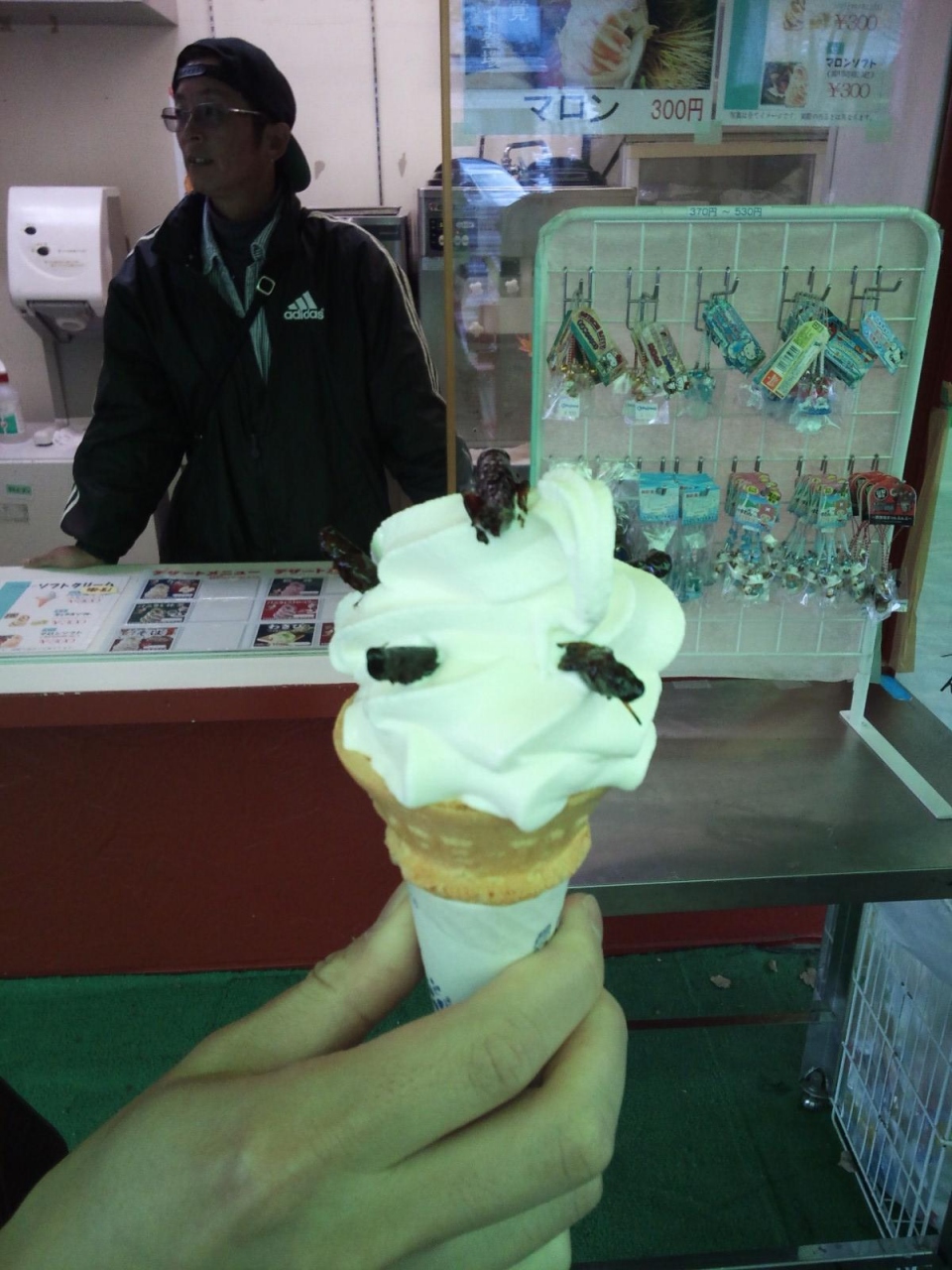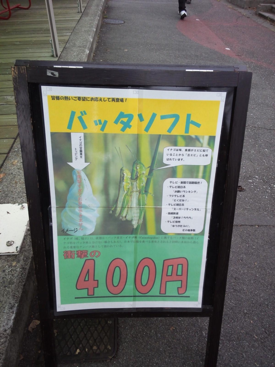 また、諏訪湖の遊覧船乗り場でかえる「バッタソフト」も勇気がある方は頼んでみてください。
