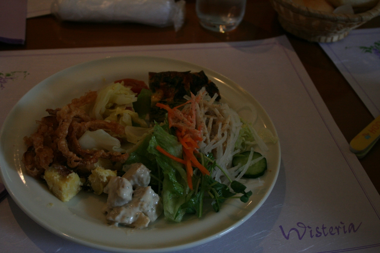 北方博物館の敷地内にあるイタリアンレストランです。サラダ・バイキング+メインのパスタというのが基本なのかな。普通においしいかったけれど、パスタが辛くて、こっちは幼児連れなのだから、最初に一言言ってくれてもという気はしました。