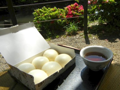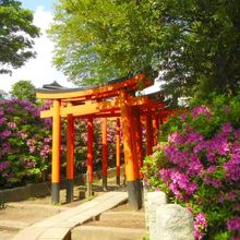 案内板が立っていて「つつじまつり」と書かれたピンクのぼり旗が立っているので