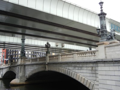 日本橋川には、石造二連アーチ橋がかかっていました。