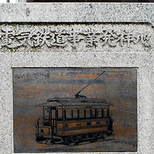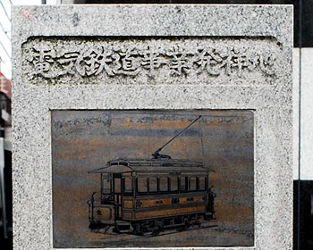 「電気鉄道事業発祥の地」の碑は二ヶ所にある。