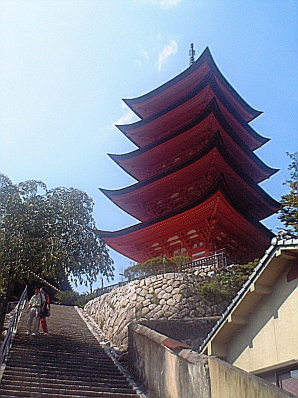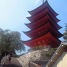 厳島神社のすぐ横の高台に建つ五重塔です。