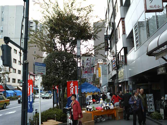 この日は平日でしたが「人形市」が開かれていて、歩道が様々な人形を並べた出店で埋め尽くされ、賑わっていました。