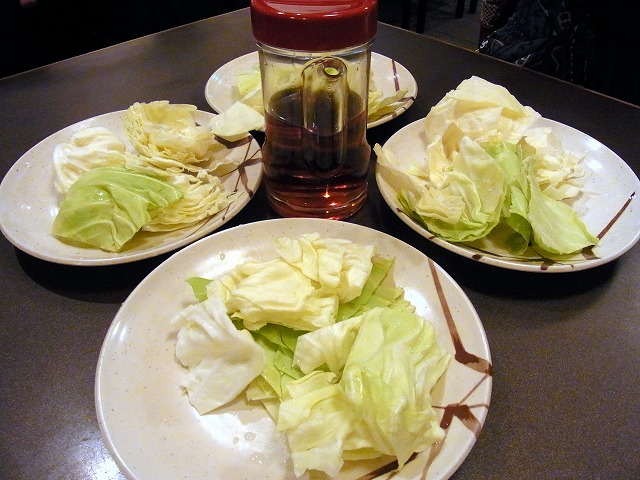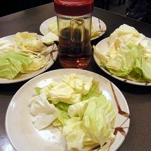 そして、料理が運ばれてくると、この酢ダレが掛かったキャベツの上に置いていくんです。