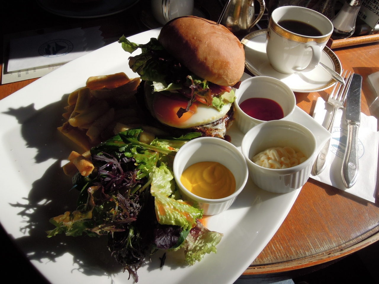 最終目的地は強羅でしたが、その前に散策と腹ごしらえをかねて宮ノ下で下車し、富士屋ホテル内にあるラウンジへ寄りました。宿泊しなくても利用できます。注文したのは、伝統のアップルパイと、個数限定の箱根富士屋バーガー。アップルパイは生地がサクサクで美味しかったです。ただ、すごい期待をしていたからか、意外と普通で感動はありませんでした…。一方箱根富士屋バーガーは2600円。付け合わせのサラダやポテトもボリュームがあり、満腹になります。いいお値段ですが、とても美味しかったです。