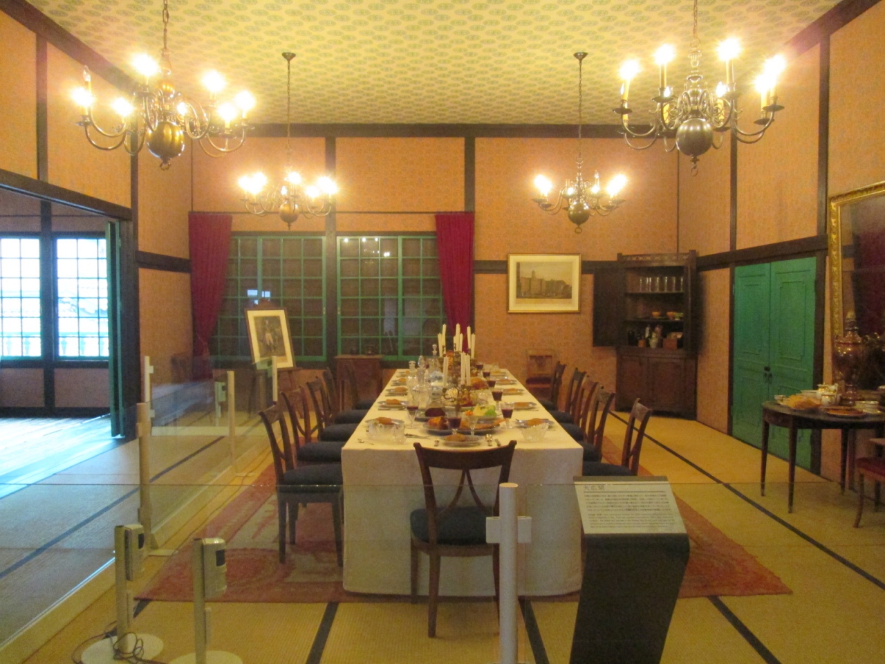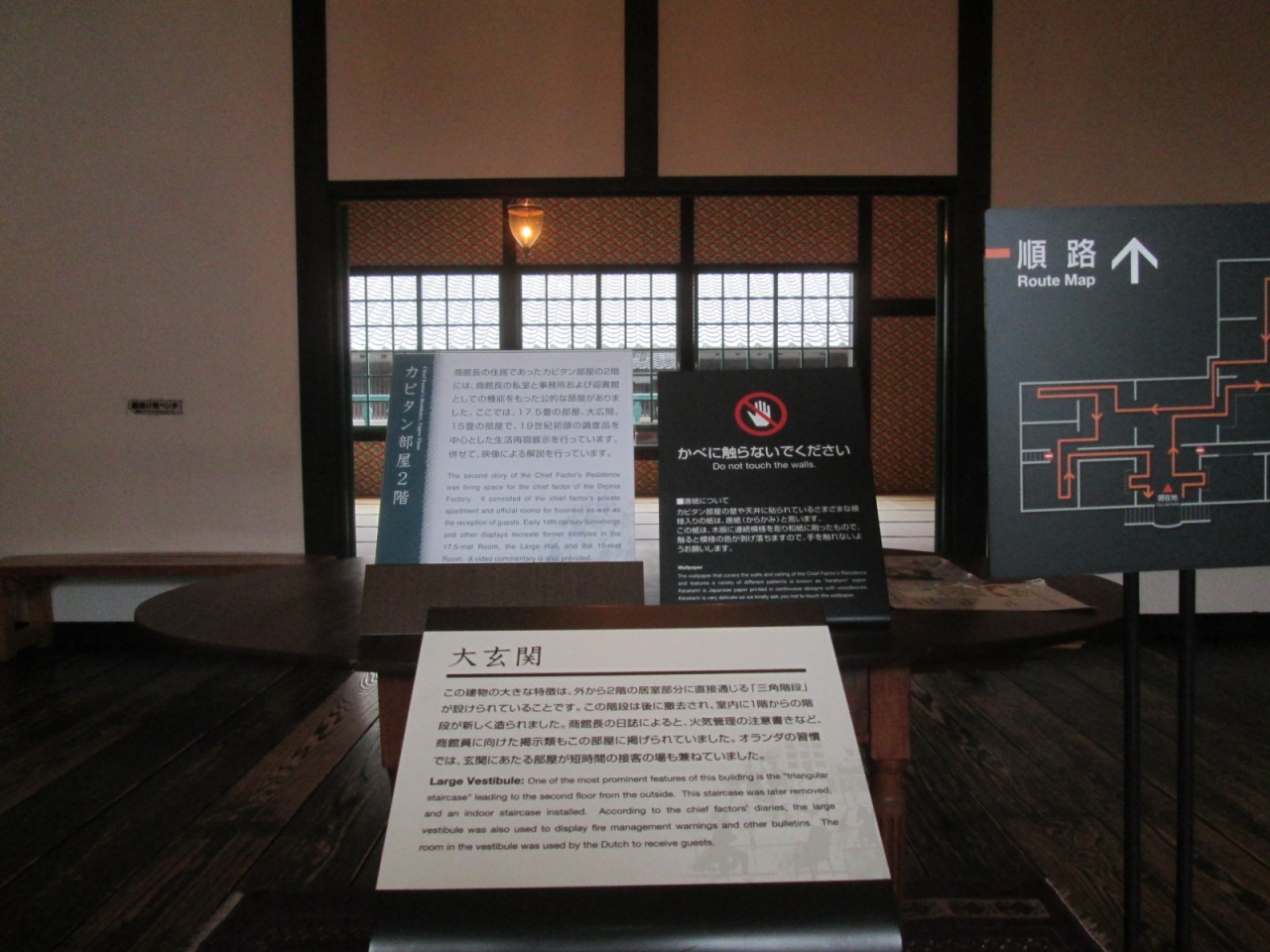 「日本史B」の授業では”甲比丹”という漢字で習った”カピタン”、英語ですと”Captain”…つまりキャプテンですから、出島のオランダ人の親分という意味になりますね。その親分の事務所や住居として使用されていた建物が「カピタン部屋」ですね。当然のように「出島」内で最も大きな建物ですし、内部の造りも立派です。「出島」観光のハイライトに相応しい場所ですね。