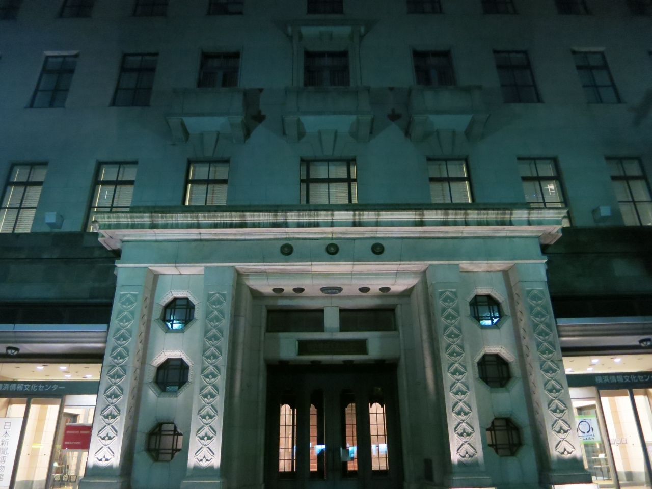横浜 関内の日本大通と本町通が交差点角に旧横浜商工奨励館(横浜情報文化センター)があります。2000年に12階の高層棟が作られ、外壁、中央階段、内装が低層部に復元されました。現在、オフィスや多目的ホールを備えた複合施設となっています。