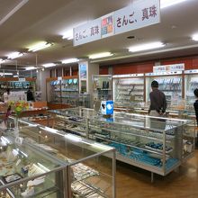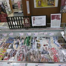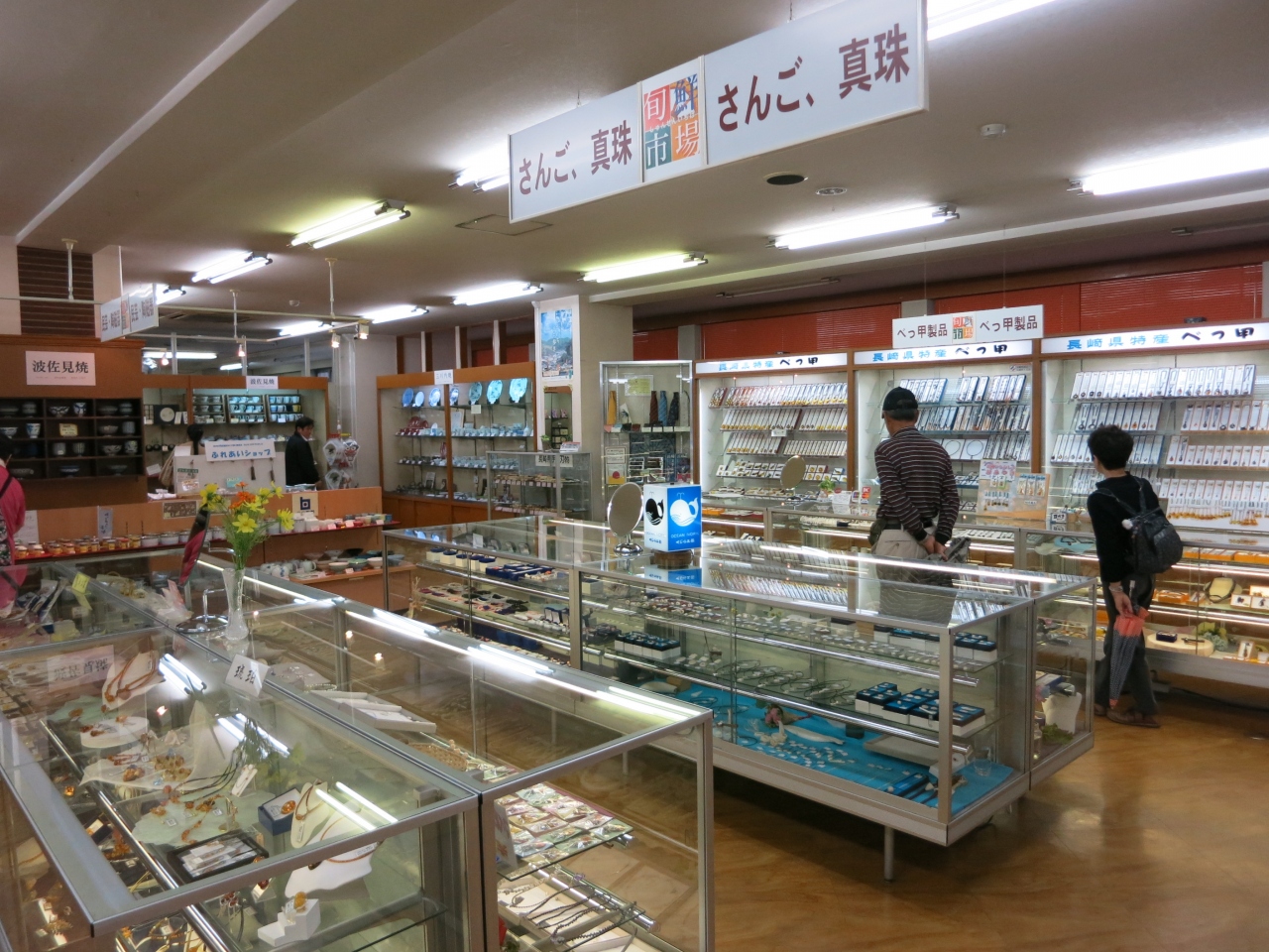 お土産は駅ビルでも買えますが、物産館の方は長崎の地酒、珊瑚、真珠などの首飾り、イヤリング、焼物や人形、鹿の角などの健康食品といったオーソドックスな特産品も扱っています。カステラやお菓子も置いていますが、駅構内のお店の方が、はやりの商品を揃えている感じがします。