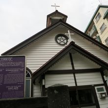 小樽の街の見晴らしがいい水天宮の丘の南側、階段の手前の住宅地の縁にひっそりとあります。札幌の時計台にも似た小さな建物で、小樽市の歴史的建造物に指定されています。普通に使用されている平凡な教会のようですが、1907年築とのことです。