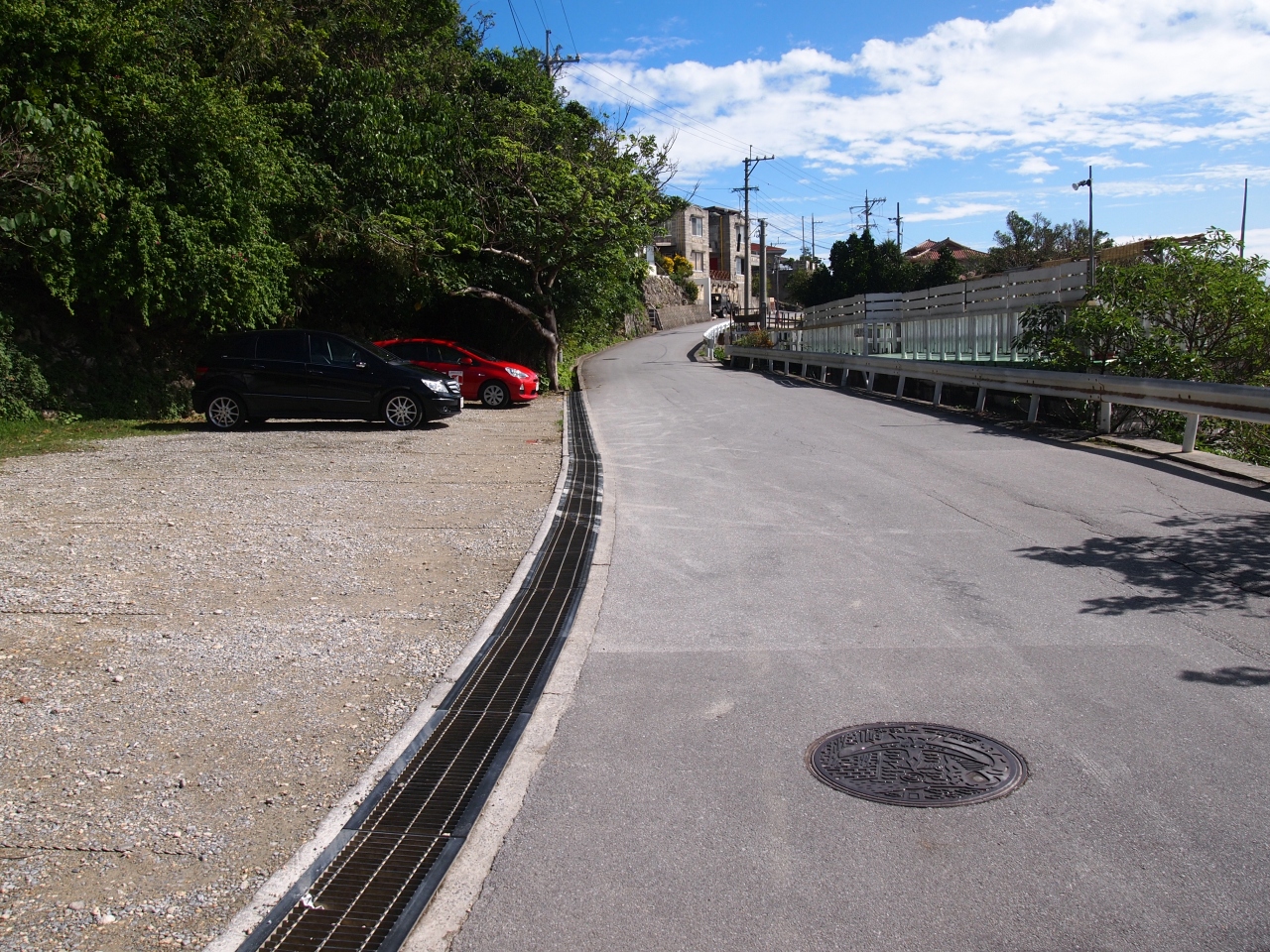 国道を走っていると、看板があって、道沿いに行くと駐車場があります。