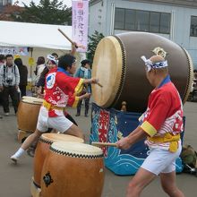 会場は小樽運河のそば。第3号埠頭の多目的広場です。小樽駅前からまっすぐ、小樽運河を越えて、観光フェリー乗り場や海上保安本部の入る小樽地方合同庁舎の前です。第二会場として小樽築港の新南樽市場でも開催していたようです。珍しいシャコの祭りに、人気の観光地、小樽運河の傍が会場ということで、かなりの人手でした。2013年は11月16日・17日の10時~15時の開催でした。