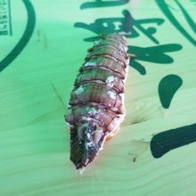 お寿司のネタに入っているシャコ。しかし最近は寿司ネタの安い代替品の話しなどが報道されます。しゃこ祭りでは本物のシャコをたくさん食べることができます。と言っても値段は少々高め。茹でシャコは3尾で¥500円でした。