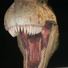 入り口付近は専用ショップになっていて、その奥がミュージアムになり、大きなティラノサウルスの顔に出迎えられます。
