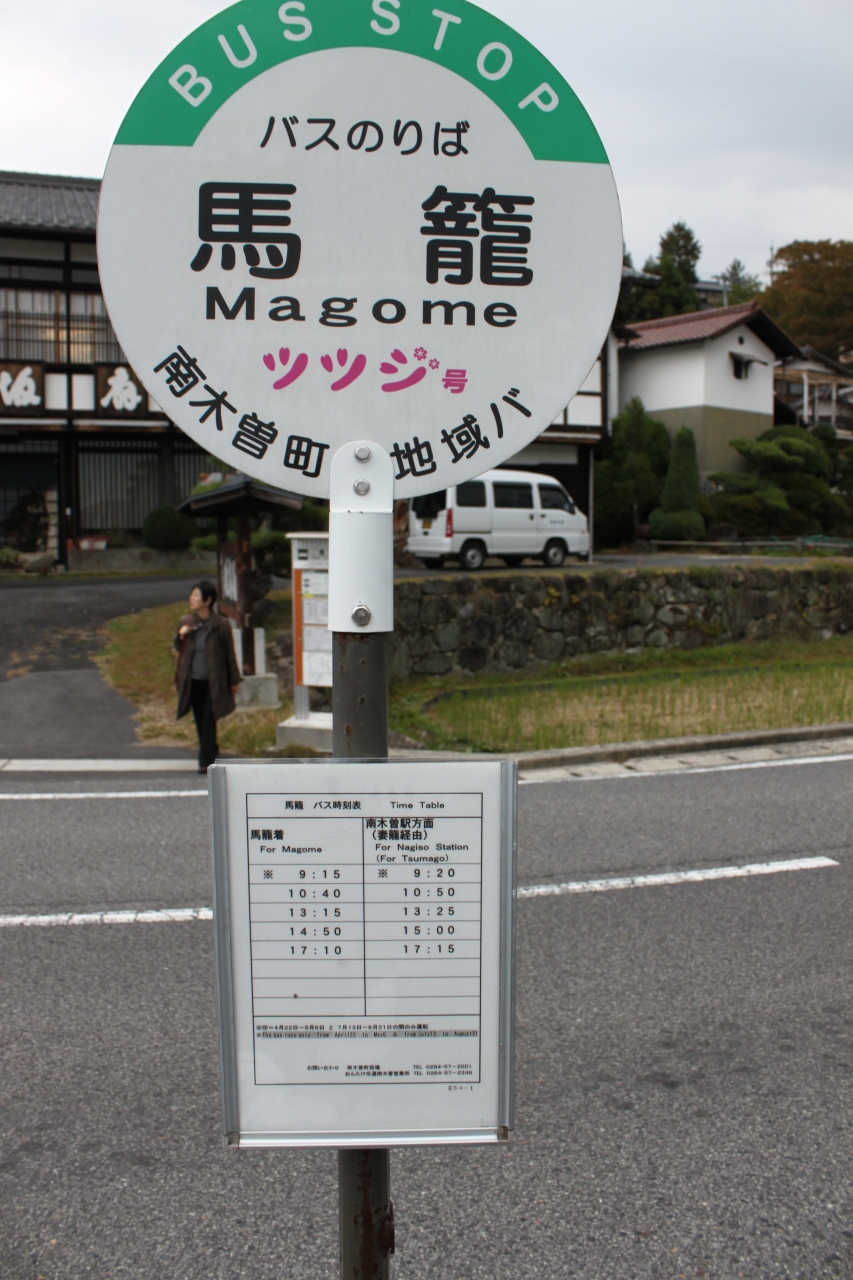 先に妻籠を散策してからバスでこちらに回った。私たちは坂下の馬篭のバス停まで乗るつもりで居たら1つ前のバス停で「ここで降りた方がよいようですよ」と他の観光客からのアドバイスが。その方達も友人から聞いてきたのだとか。