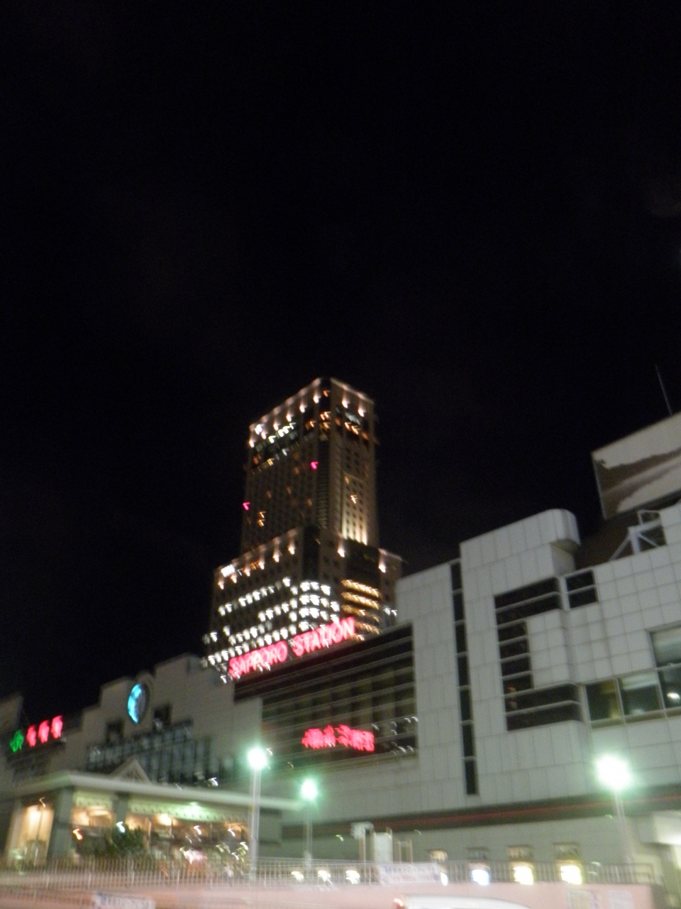 JR札幌駅にそびえるJRタワーは、かなり遠くからでも見えるのでいいランドマークになります。 夜は窓に明かりがともり、なかなかきれいです。周囲にはアピアやステラプレイスなどのショッピング街があって、夜でも賑やかでした。