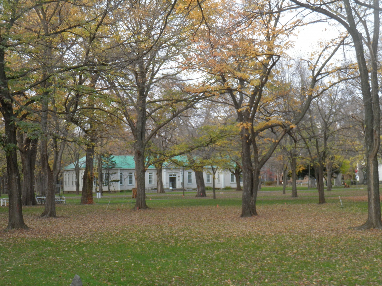 旧札幌農学校校舎は、札幌の北海道大学のキャンパスにあります。 農学部の立派な建物の前方にある、緑色の屋根の平屋です。 林の中にあるので、紅葉の時期にはなかなか趣があります。 近くには、聖蹟碑やクラーク博士の胸像などがあります。