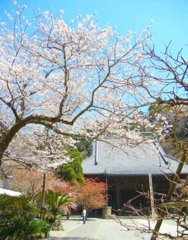 日蓮上人の像が、桜の絶景ポイントに建てられていて