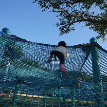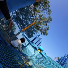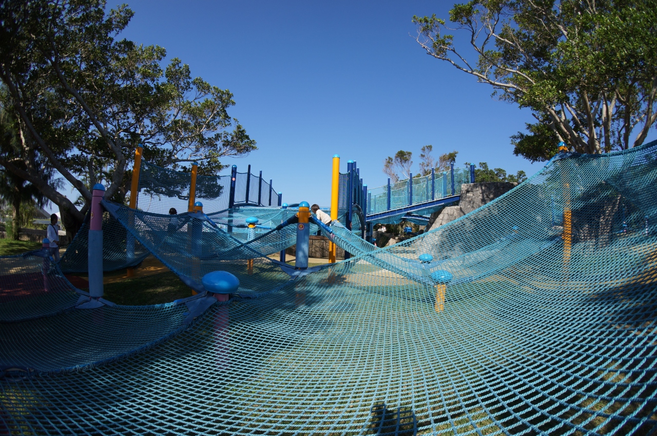 とても大きなネット遊具で、ネットのキレイなブルーは沖縄の海を表現しているそうです。