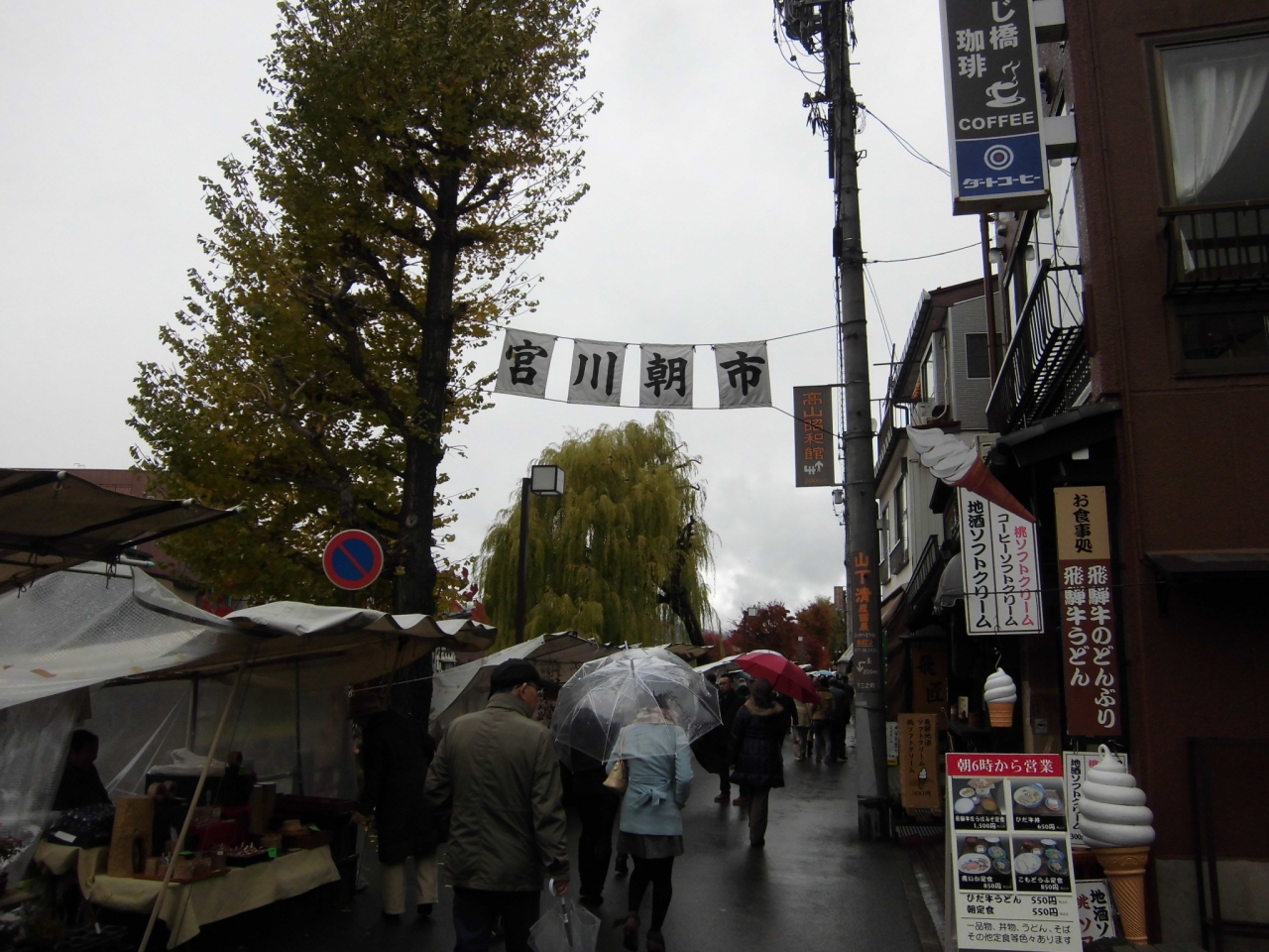 高山の宮川沿いの朝市