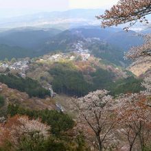 吉野駅からバスとマイクロバスを乗り継いで奥千本入り口までやって来た。そこから少し歩くと花矢倉展望台に到着。バスの車窓からは思ったような桜が見られなかったので少々がっかりしていたが、、ここではそれなりの景色が見られ安堵した。下千本は葉桜だが上千本はかなり咲いていたのでかなり楽しめた。ここの桜は葉と花が同時に付くのでソメイヨシノとは風情が違うようだ。最盛期ではなかったようだったがここまで来た甲斐はあった。(下千本だけを見た人はがっかりしたような話をしていたので)