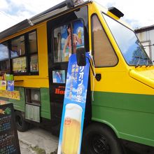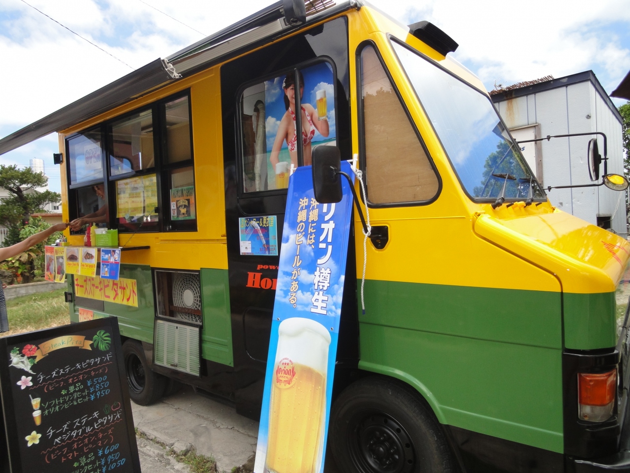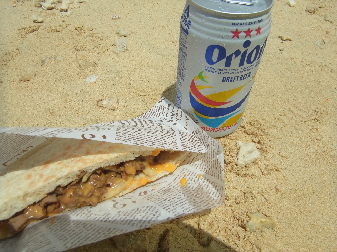 こちらで飲み物を、スーパーの前に停まっていた移動販売のお店でチーズピタを買って、ビーチへ行きました。