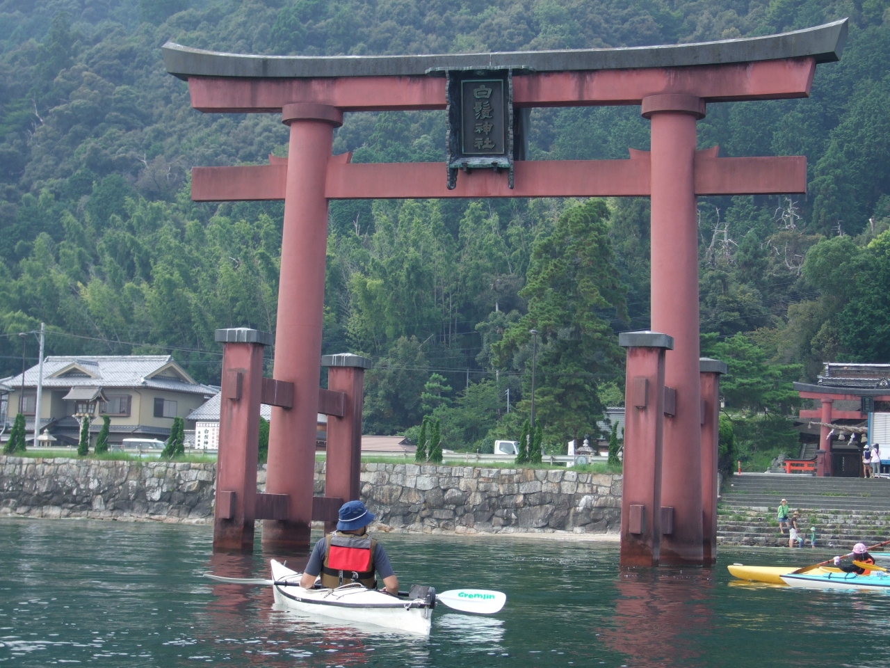 - 琵琶湖から鳥居をくぐろうとすると、カヌーやジェットなどでしか行けません