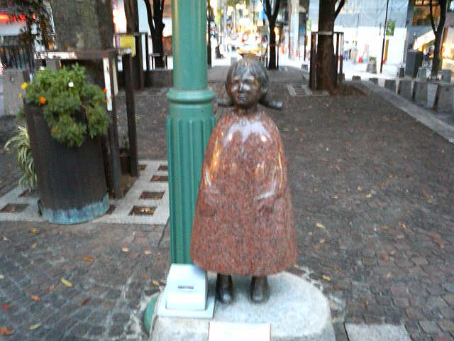 「赤い靴」の女の子が暮らしていたことを伝える麻布十番の像
