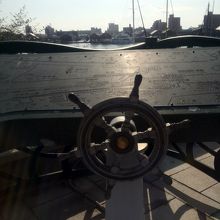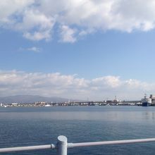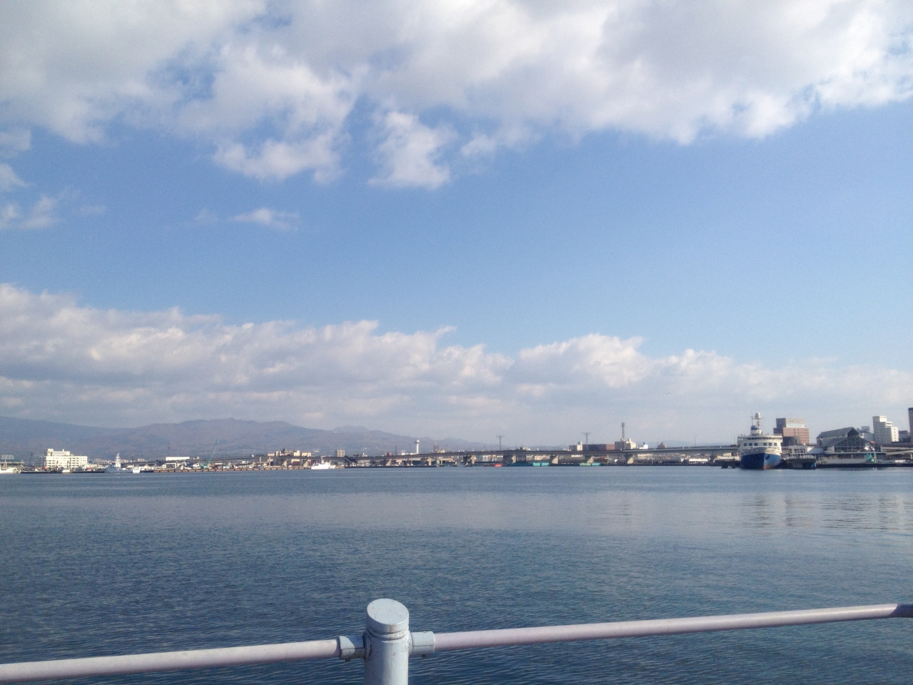 海に突き出たところに埋立地を作って整備したので、三方が海に囲まれています。摩周丸や赤れんが倉庫群が目に入り、そして後方には函館山の全景を見ることができます。