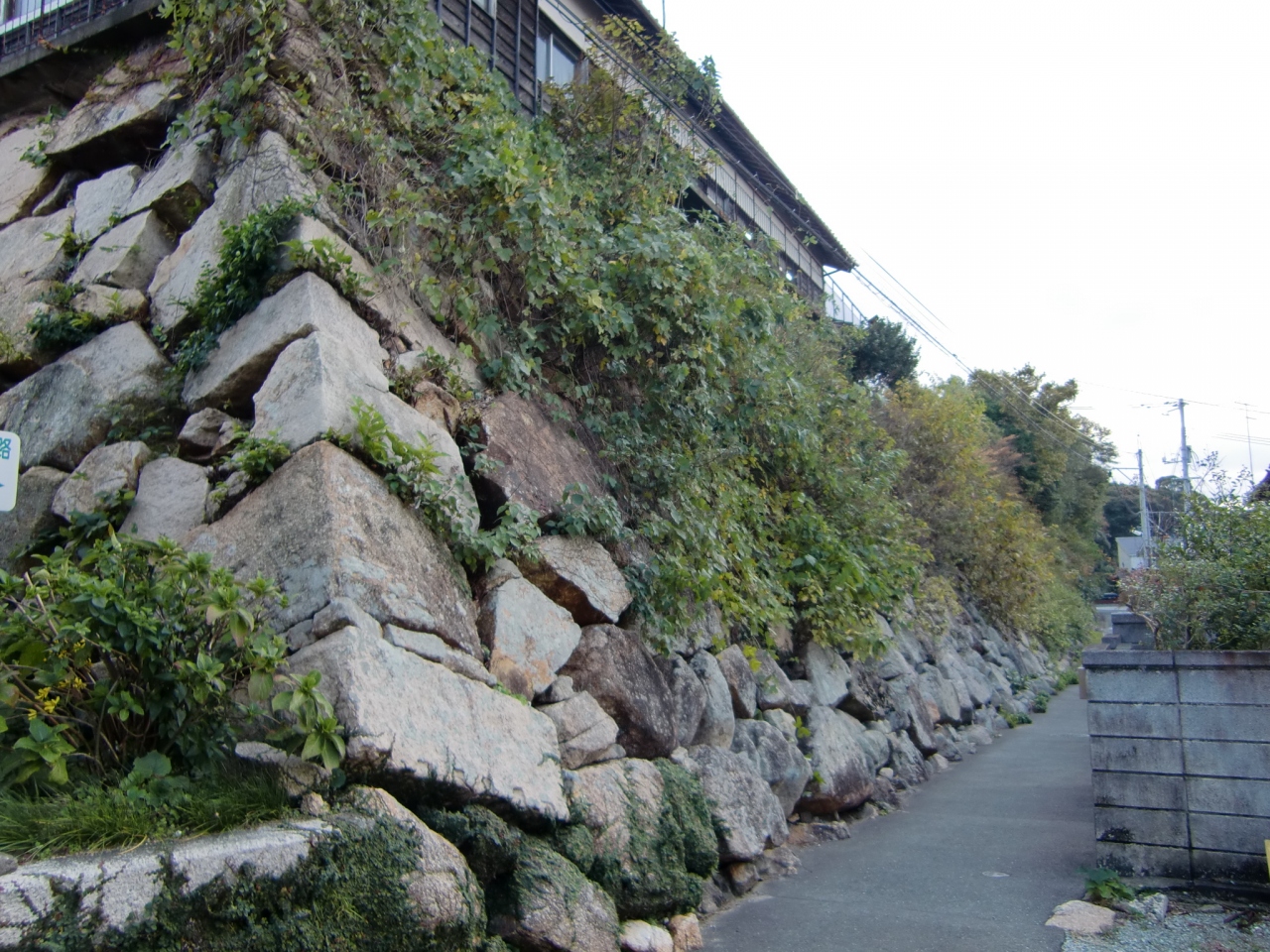 石垣の上に、民家(売物件)があり、不思議な光景ですが、時代の変遷が感じられる場所です。