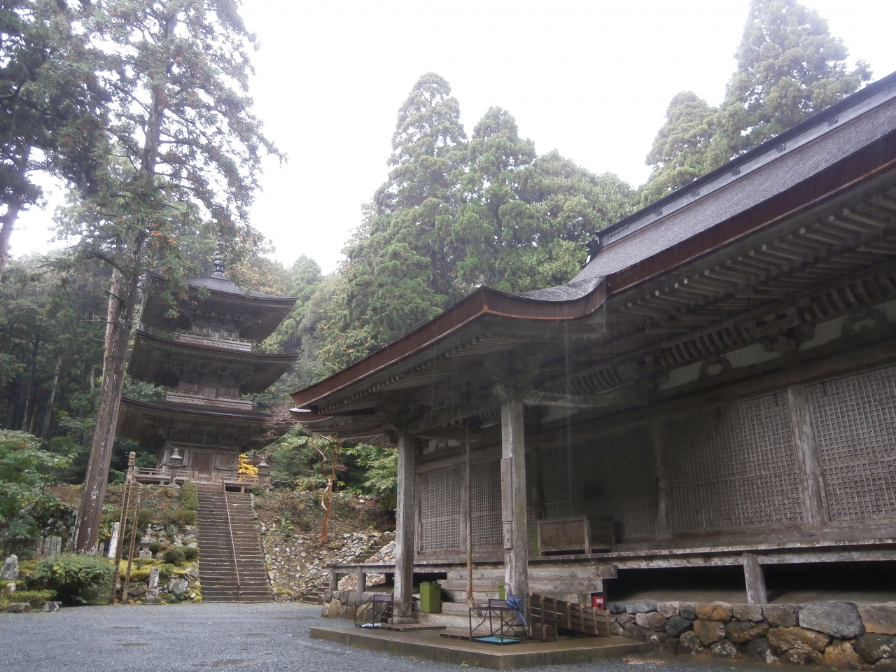 その先に受付があり、拝観料を払うと、国宝の本堂と三重塔が見えてきます。
