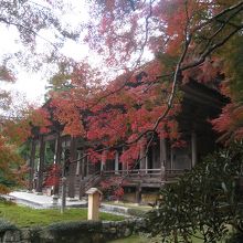 三千院、実光院と訪れた後、正面に見える大きな建物が勝林院でした。入口からよく見えるので、門前で写真をとるだけの人が多いようです。折角なのでお堂の中にも入りました。軒先にある彫刻がとても見事で面白かったですね。紅葉には少し早かったのですが、右側にある休み処から見る紅葉が美しいことは想像できました。