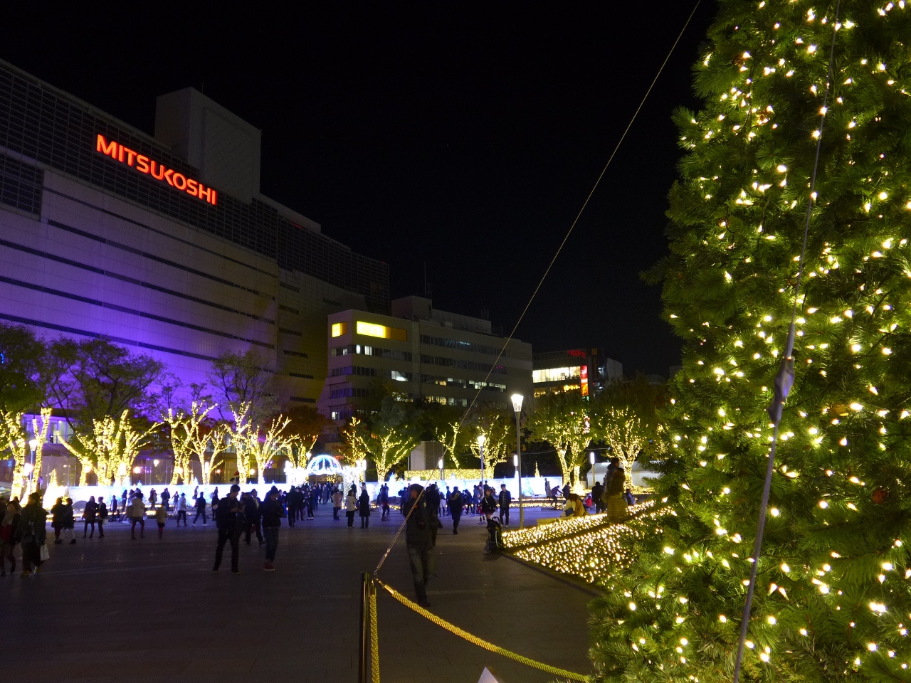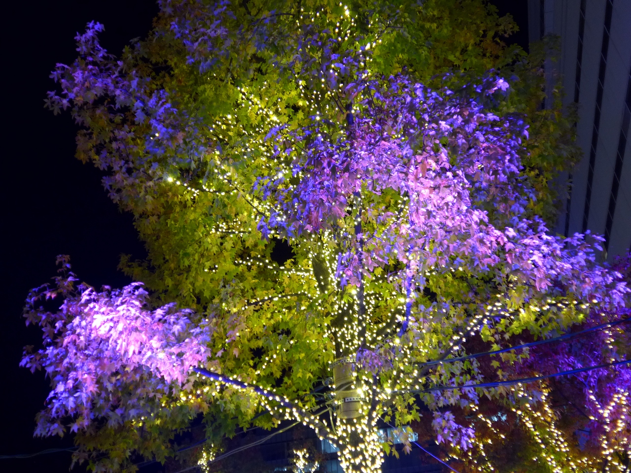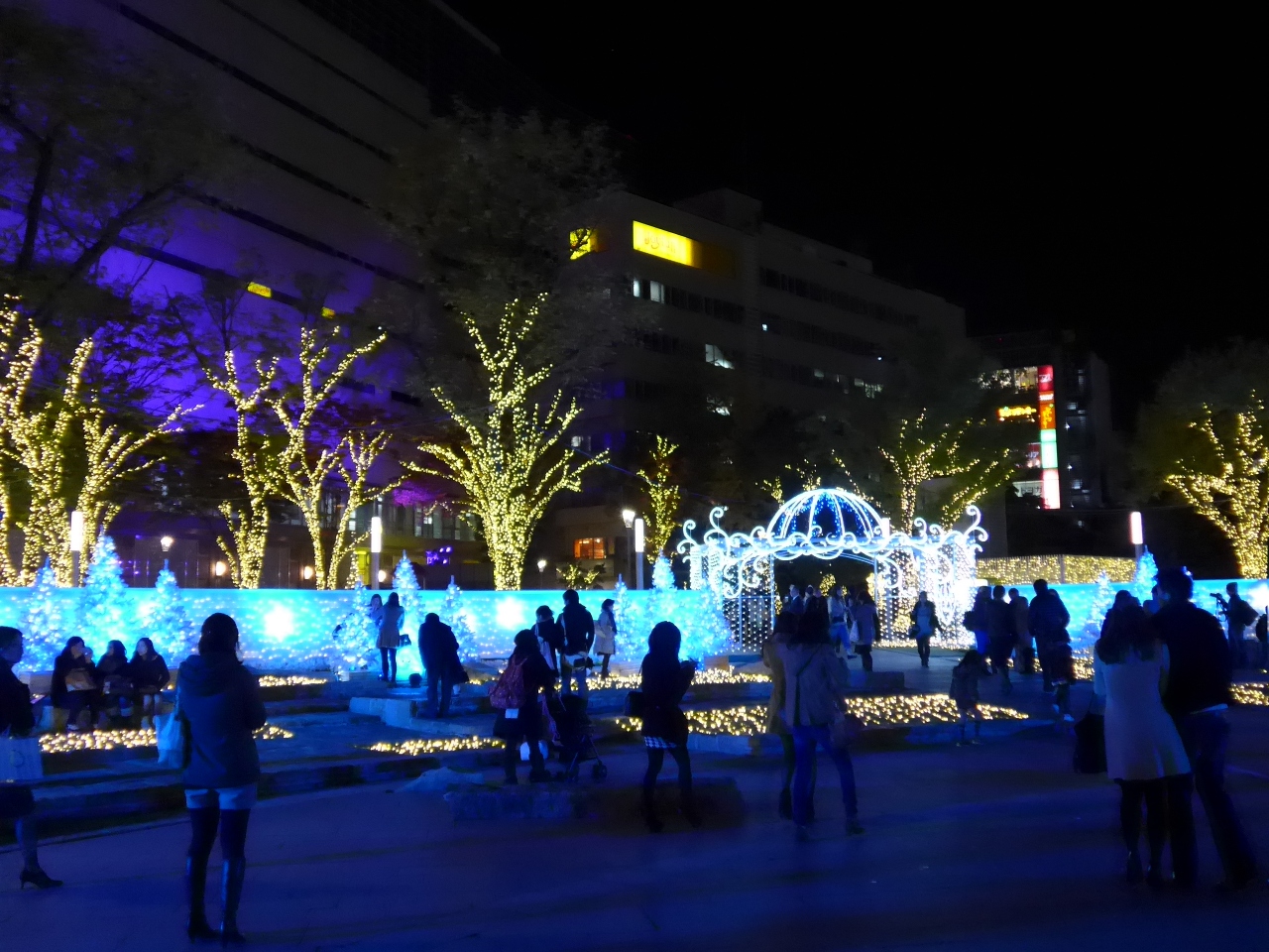 西鉄天神駅前にある警固公園の2013年、冬の風物詩「イルミネーション」は公園内、全てをLEDランプ色とりどりで飾られとても見応えがあります。この公園を中心に新天町商店街方面へ行く通りも多くのイルミネーションやクリスマスツリーが飾られ待ちゆく人の目を楽しませます。