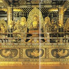 中尊寺は深い森の中にあって静寂と荘厳さを感じる場所。その中にあってここは何か場違いな感じもする。堂の中も外も金箔が貼られ、金ピカ。1124年の建立と言うから今から900年近く前のことだが、当時の技術や知力はものすごく高かったのだなーと感心させられる。