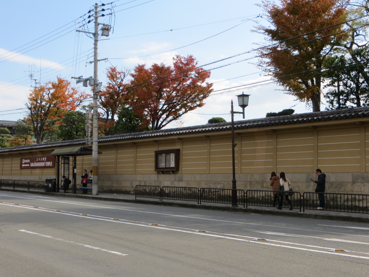 この時期三十三間堂はひっそりとしていました。ただ外人観光客が結構いました。境内には紅葉する木々はあまりないようですが、それでも少し色付いていて綺麗でした。元々は白河上皇の御所で院政を行った場所とのこと。歴史を感じます。