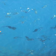 餌を与えるとたくさんの魚が寄ってきて,ちょっと気持ち悪いと思えるほど。