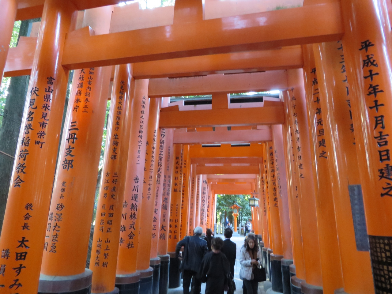 20年ぐらい経過して古くなっている鳥居は色あせ、最近の鳥居は基礎工事が頑丈だったりと、奉納されるが故のバラバラ具合も興味深いです。