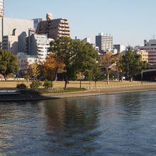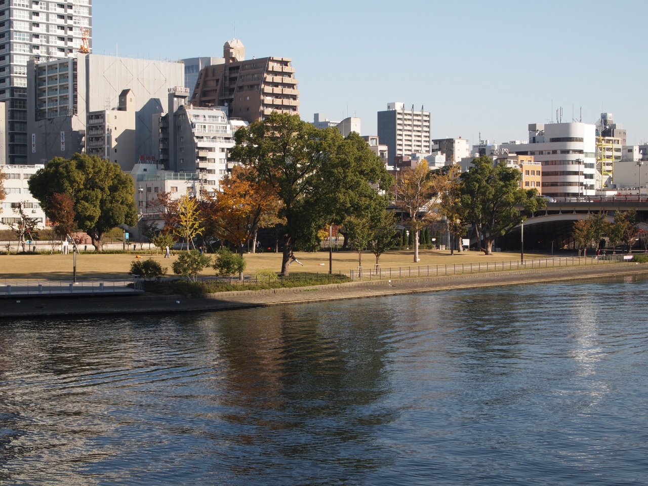 公園は天神橋や難波橋から中ノ島の公園へと降りていきます。