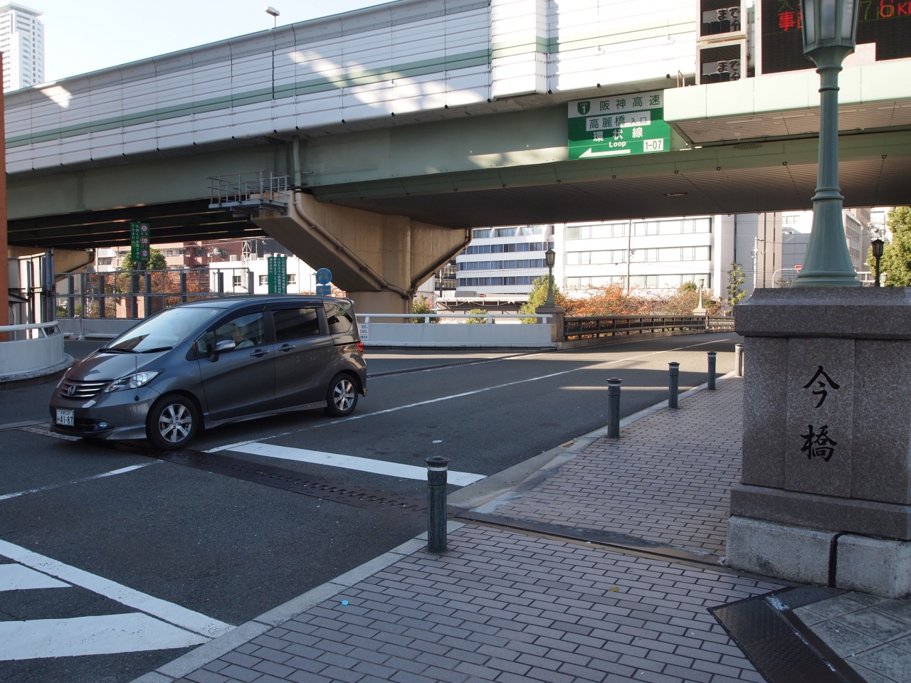 よつや橋と東側に引っ付いてV字型になっているめずらしい形の橋です。