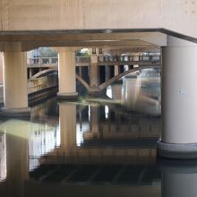 橋はシンプルな形で橋の上には阪神高速の高架があるので眺めがよくないのが残念です。