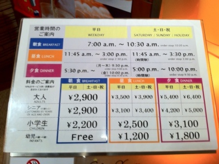 値段は時間帯と年齢によってわかれていますので、