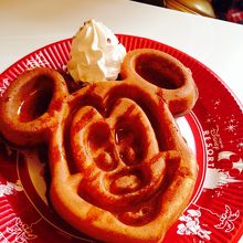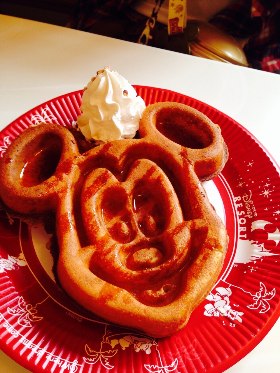 ガイドブックには必ずのっているミッキーの顔のワッフル。一度食べてみたいと思っていましたがアトラクションやショーのスタンバイでなかなか行けてなかったワッフルカンパニーにやっと行けました。プレーンは400円でお手頃。生地はサックサクで思っていたより軽い感じ。あっさり食べられました。