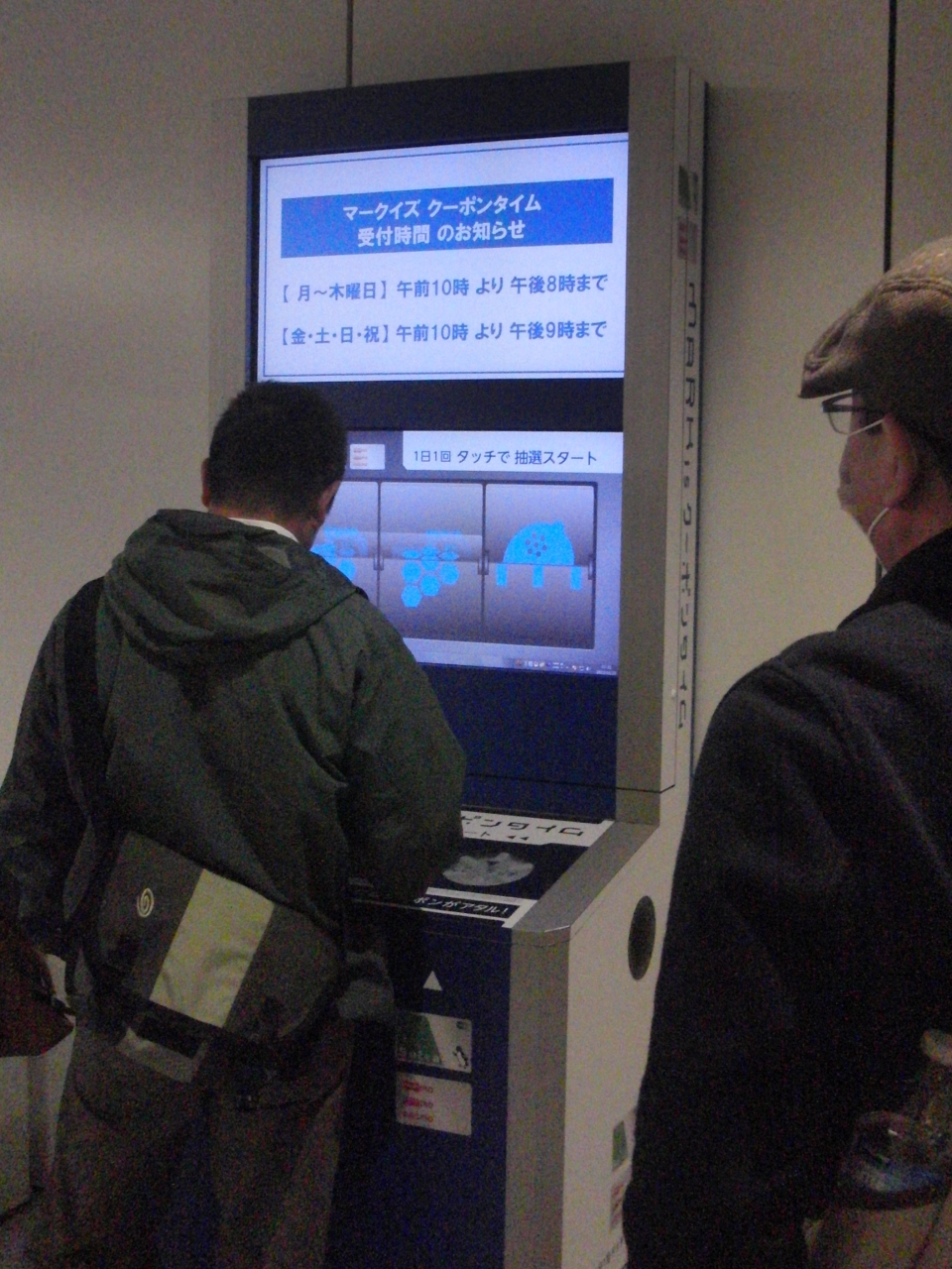 地下4Fにクーポン券が当たる機会があって、SUICAやPASMOをかざすと、マークイズ内のお店で使えるちょっとしたクーポン券が当たりました。 (意外な事に外れる場合もありました)